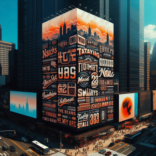Grandes painéis publicitários em áreas urbanas, como a Times Square, onde o trabalho de Scher pode ser visto em campanhas publicitárias impactantes.